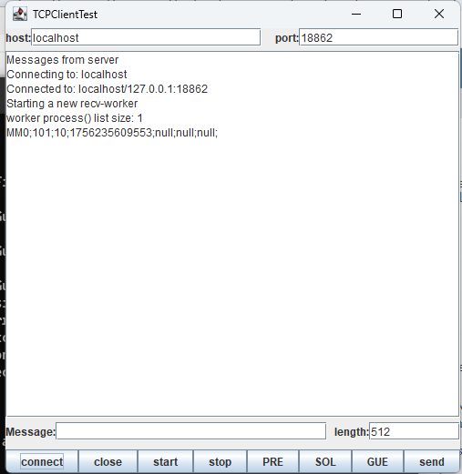 Nel package mastermind.test.tcp è presente una app GUI chiamata TCPClient che consente di inviare messaggi arbitrari che contengono qualsiasi sequenza di caratteri e di qualsiasi lunghezza. Nella immagine seguente potete vedere uno screenshot della applicazione hostile.